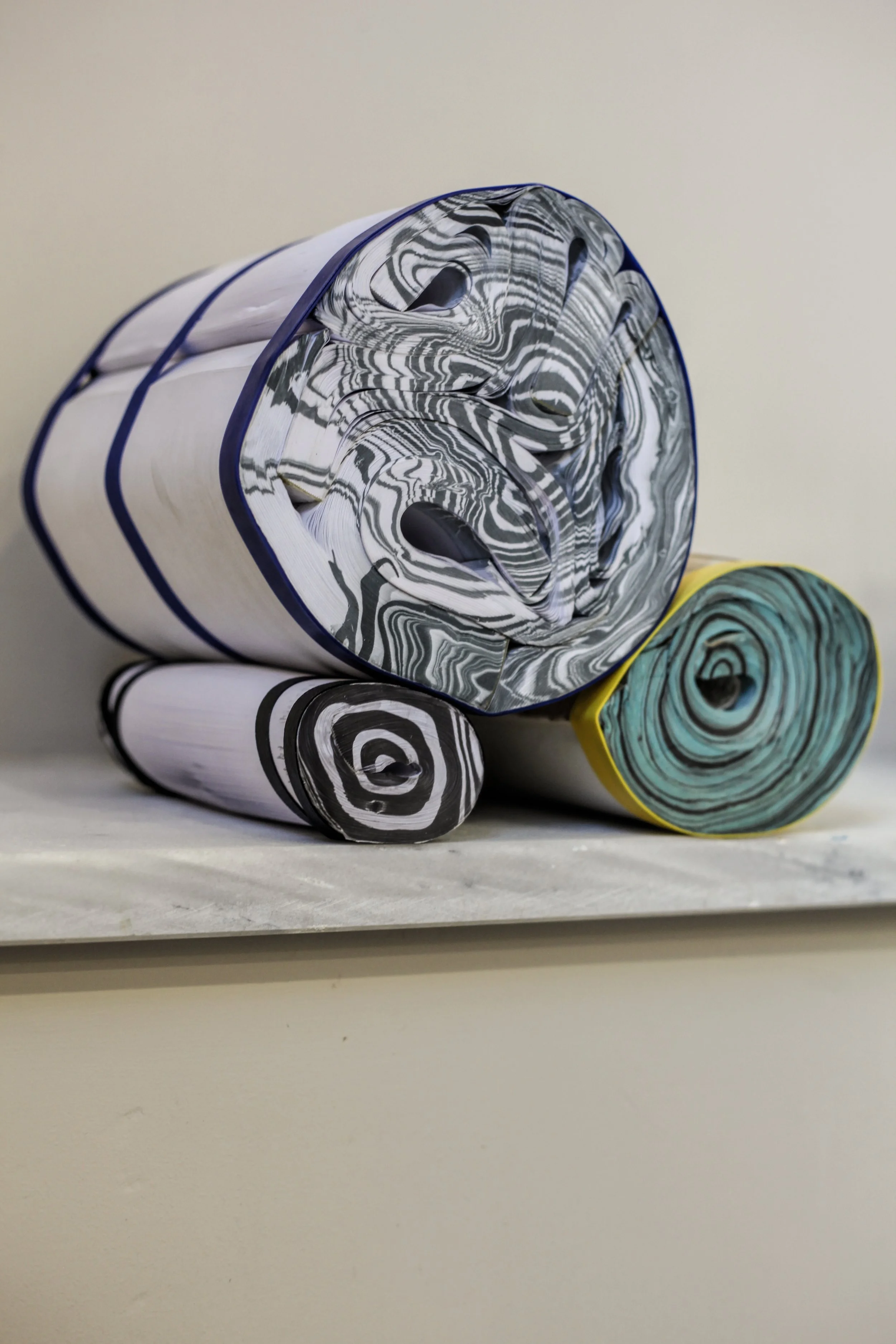2022, Japanese marbling print on reference books, elastic bands, dimensions variable